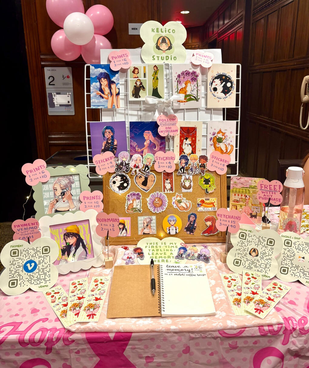 This was my first small art table for a charity event featuring some older art. I plan to create more simple and fun designs that still captures my love for color, warmth, whimsy, and (ofc) cats!Thank you for stopping by and for your support (ᴗ͈ˬᴗ͈)ꕤ.゚